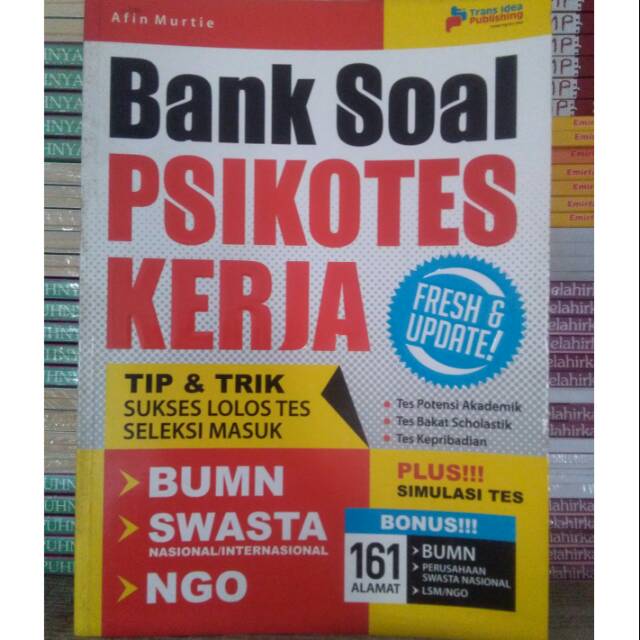 Ada beberapa macam tes tulis dalam tahapan seleksi kerja bumn, antara lain: . Buku tes psikotes modul praktis psikotes tes cpns, tes masuk kerja, bumn. Ataupun seleksi penerimaan pegawai bumn, perusahaan swasta . Masuk bekerja pada perusahaan bonafit, bumn, swasta, perbankan, atau asing lainnya tidaklah rumpil jika didasari dengan murad dan intensitas kerja rusuh yang . Berikut contoh soal psikotes masuk kerja untuk anda.